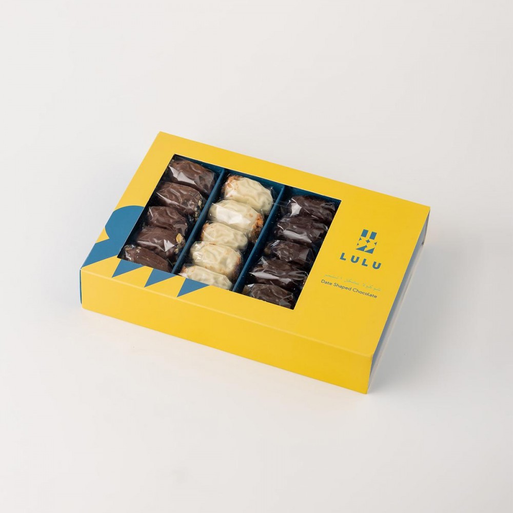 Date-shaped chocolates coated in milk and dark chocolate, filled with smooth date paste and a variety of exquisite flavors.