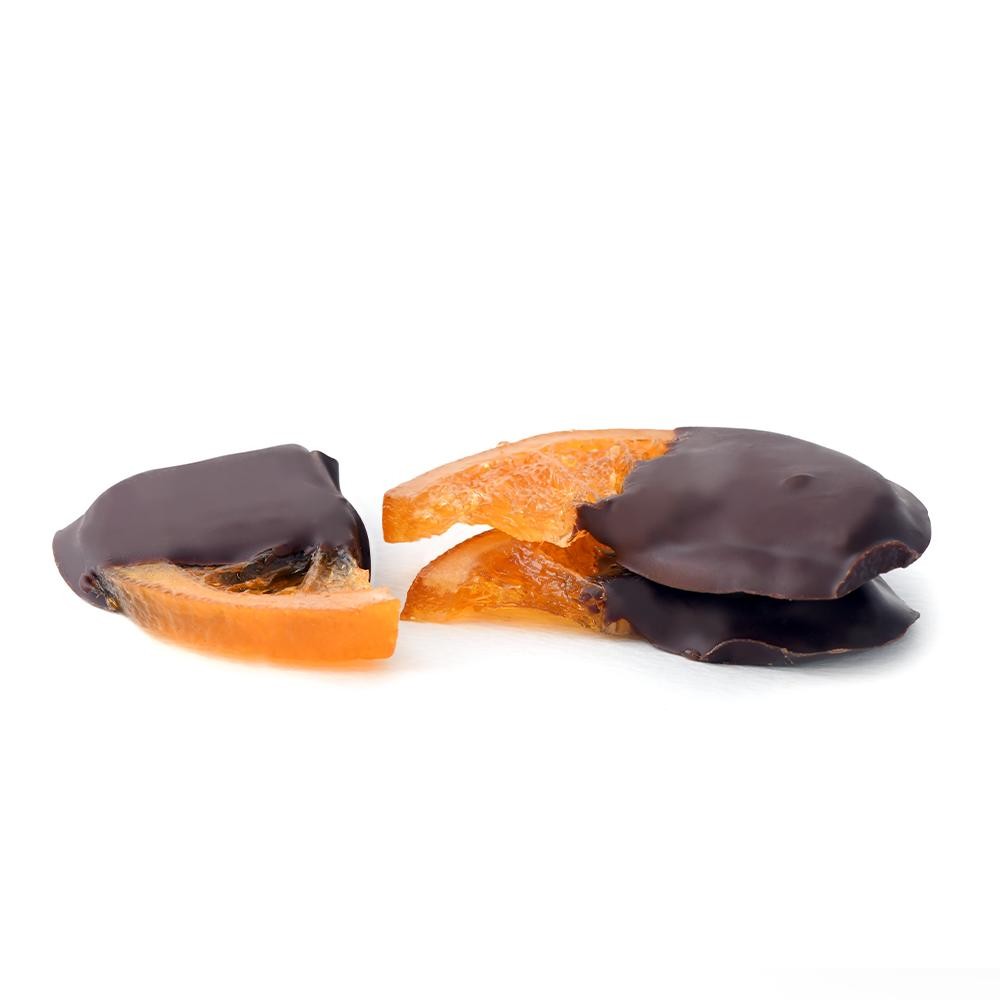 Enjoy dried orange slices dipped in rich dark chocolate, with the perfect balance of tangy citrus and smooth, indulgent chocolate in every bite.