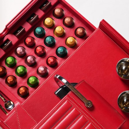 • Complete coffee ritual set: 28 Nespresso capsules, chocolates, 4 metal espresso cups, 2 Nespresso spoons