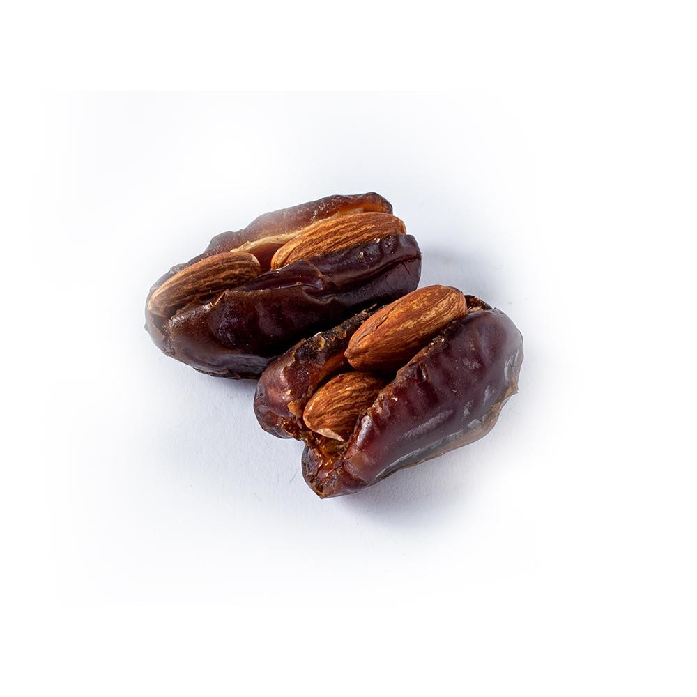 Sweet chewy dates filled with crisp almonds. A traditional Middle Eastern snack high in fiber and natural energy.