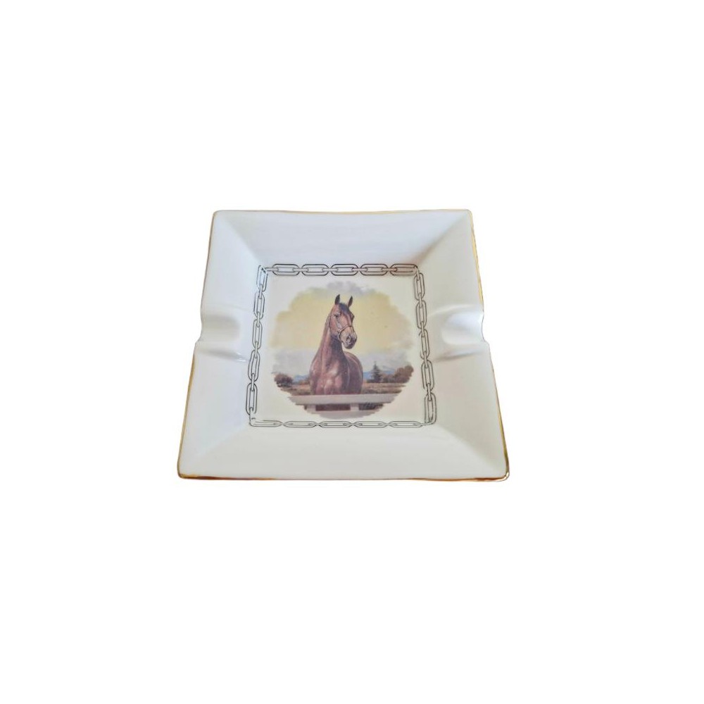 A bold ashtray featuring a horse motif and gold rim, perfect for adding strength and character to your cigar moments.