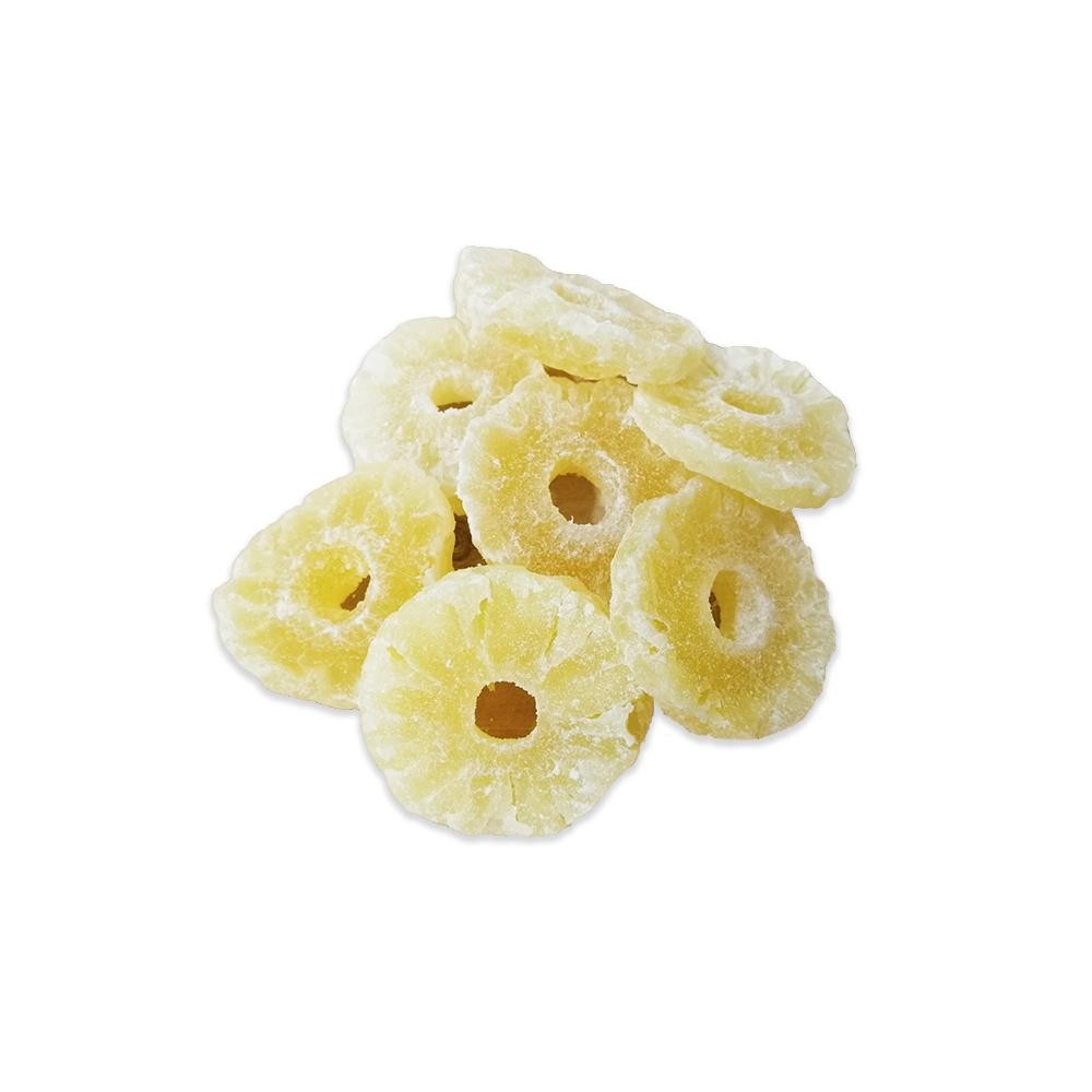 Naturally dried pineapple with a touch of sugar. Sweet-tart tropical flavor, tender texture, no artificial colors or preservatives. Ideal for snacking, gifting, or desserts.