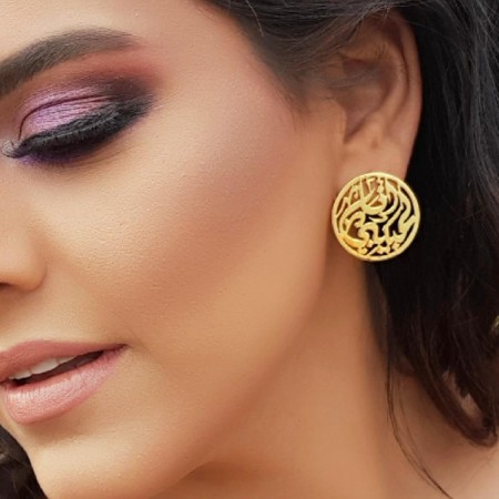 Engraved with “أنا لحبيبي وحبيبي إلي” — “I belong to my beloved, and my beloved belongs to me", these 18k gold-plated brass earrings offer a romantic, timeless expression of devotion.
