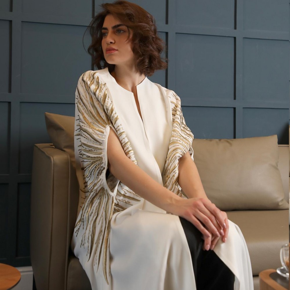 Gold Linear Abaya | White