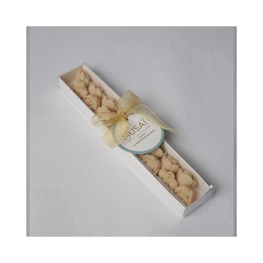 A beautiful selection of 14 handcrafted flower-shaped marzipan treats.