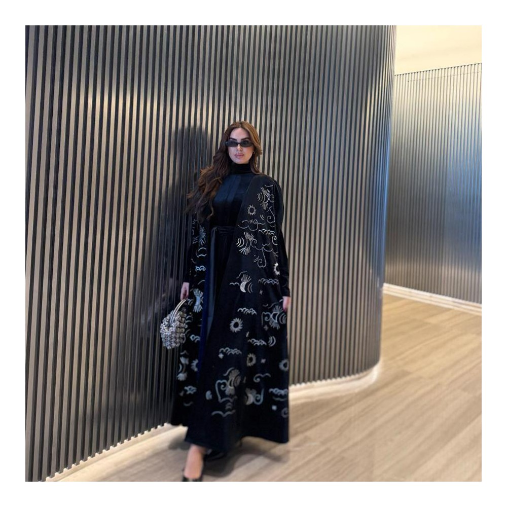 A matching poncho and jumpsuit set featuring silver embroidered detailing, designed for an elegant layered look.