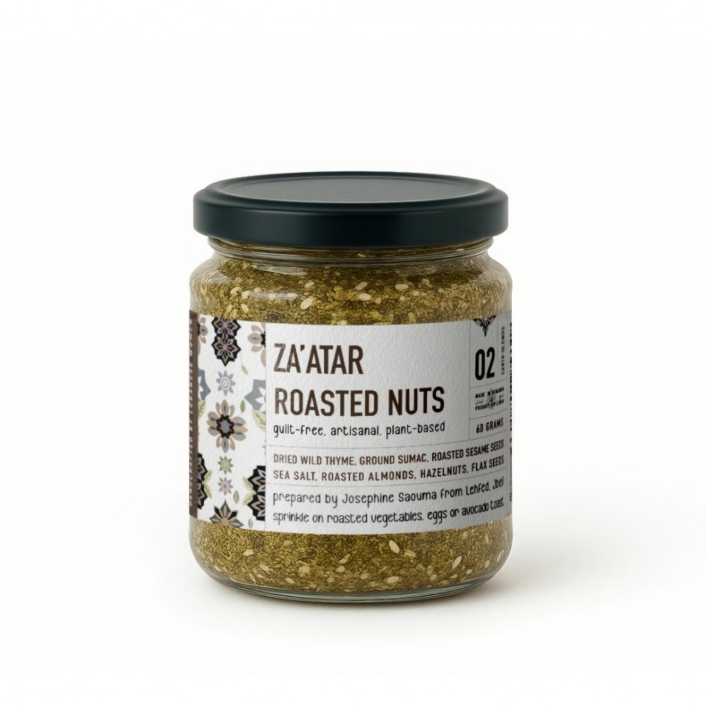 Ingredients: Wild thyme (zaatar), roasted sesame seeds, sumac, sea salt, roasted almonds, hazelnuts, flax seeds